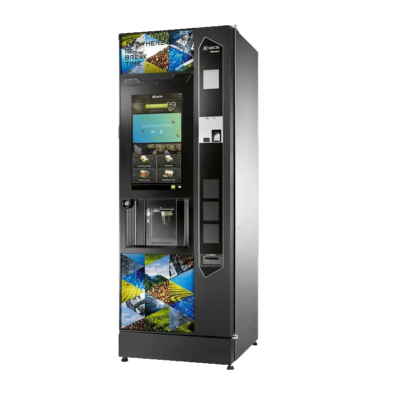 Il modello Maestro Touch (denominato anche Barista 1000 Touch in versioni aggiornate) rappresenta l’eccellenza nella gamma Necta: elegante, performante e pienamente personalizzabile. Questo distributore automatico di caffè di fascia premium è ideale per ambienti ad alto traffico che richiedono il massimo della tecnologia.